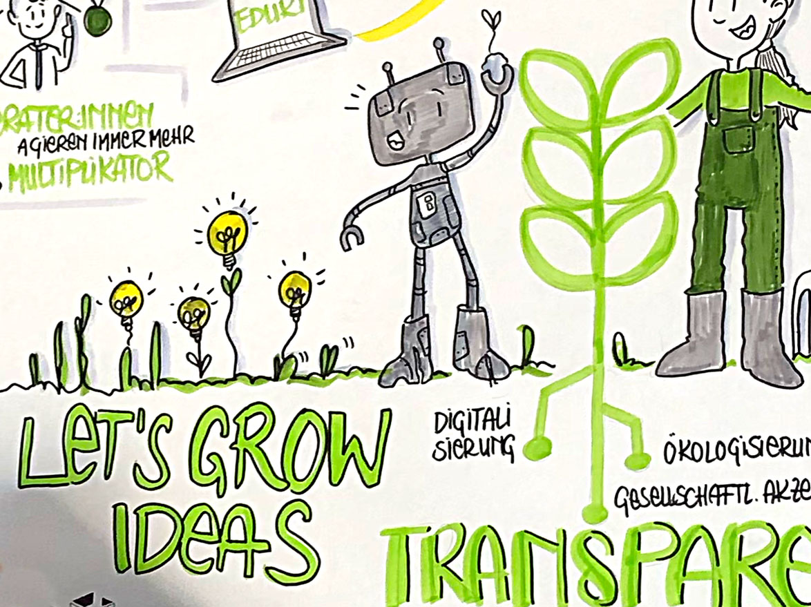 Mit einem Graphic Recording schafft Ihr nicht nur einen enormen Mehrwert für Euch und alle Teilnehmenden. Es schafft Begeisterung, ein Gemeinschaftsgefühl, es bringt Menschen ins Gespräch. Die klügsten Unternehmen kommunizieren nicht nur – sie lassen auch visualisieren.
